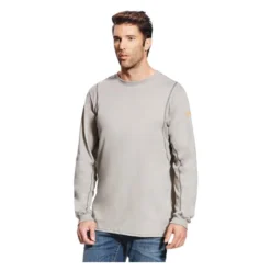 Ariat flame-resistant knit shirts are constructed with the ultimate comfort, technology and durability in mind. FR fabric is soft against the skin and the taped inside back seam eliminates irritation. Plus, moisture management will keep you cool and dry.