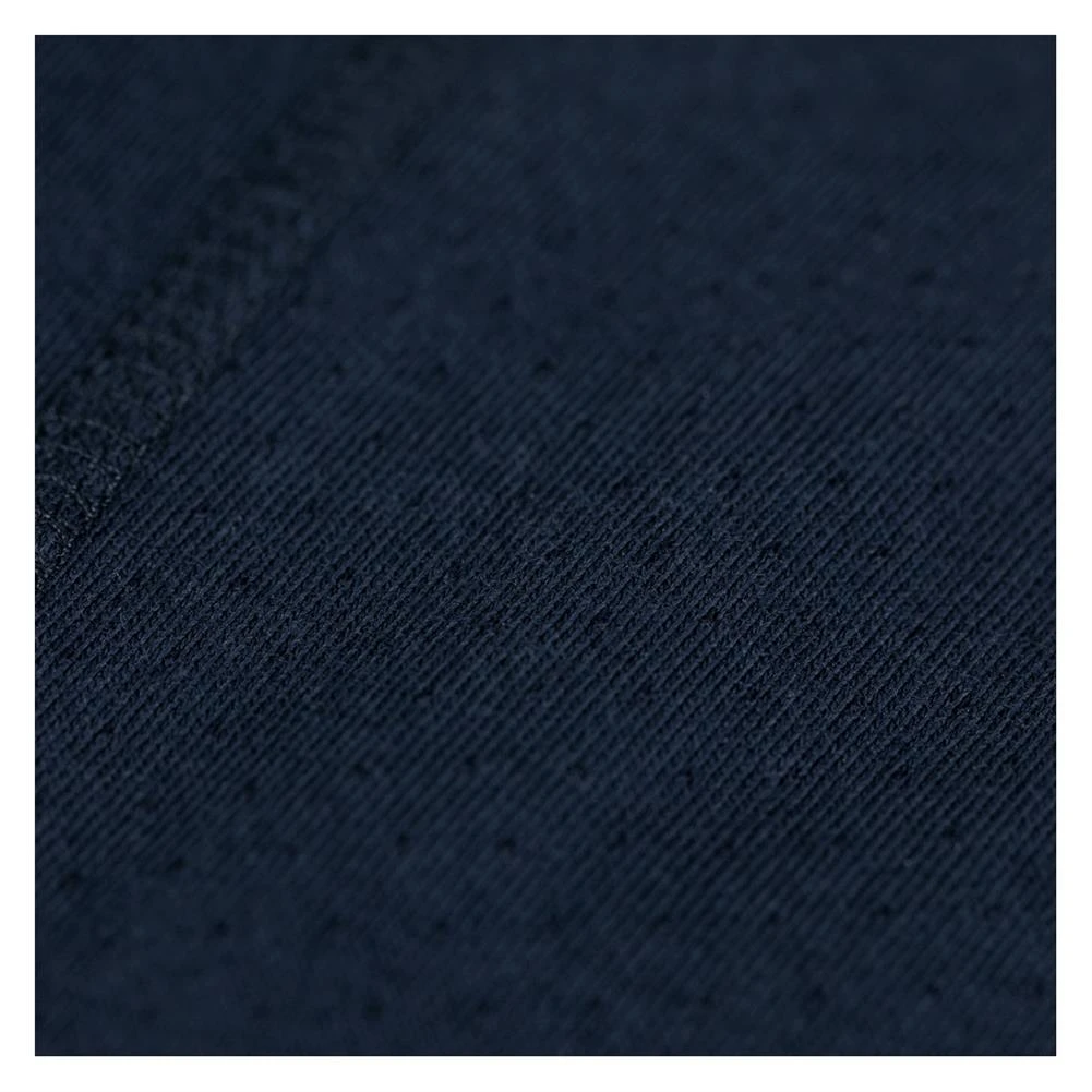 - Solids: 5.75 oz., 65% cotton / 35% polyester stretch plaited jersey knit