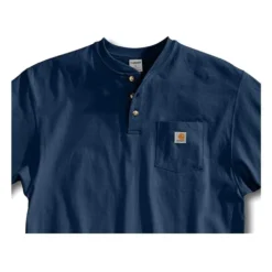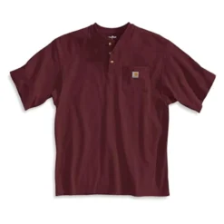 Get the comfort and durability you need for a hard day’s work with the Carhartt Short Sleeve Workwear Pocket Henley. Made with soft 100% cotton jersey knit fabric, this shirt has a durable rib-knit collar and a three-button front placket for a clean, professional appearance. The tagless neck label rests comfortably against your skin without the irritation that can come with regular neck tags. A left chest pocket with a sewn-on Carhartt label keeps small accessories close at hand. Featuring side-seamed construction to minimize twisting, this short sleeve shirt feels great and holds up through tough conditions and constant use.