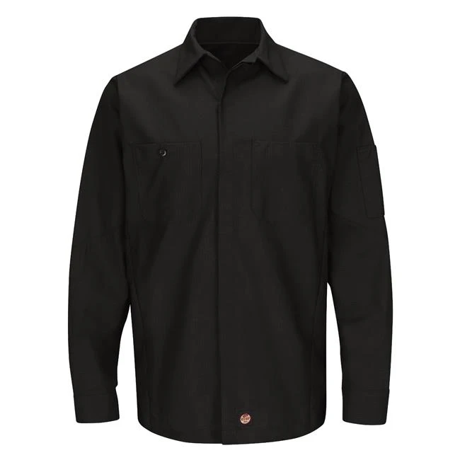 This long-sleeve, button-up shirt is styled for today’s automotive workers with a straight bottom hem that looks smart whether or not it’s tucked in. The durable ripstop fabric not only prevents tearing but wicks away sweat, keeping you cooler in steamy situations. Customize your shirt with color choice and stash important utensils in the front or sleeve pockets.